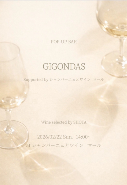 22日(日)はマールでアルバイトをしてくれている舞原昇大くん主催のイベント「POP-UP BAR GIGONDAS」を開催します。今回で2回目ですね。