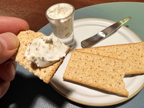 フキノトウのクリームチーズ 2026-02-21 10:41:28 マールのアミューズです。定番はミョウガと九条ネギを入れたクリームチーズですが、今の時期はフキ味噌ならぬフキノトウのクリームチーズです。アーリオ・オーリオでじっくり炒めて、チーズに混ぜ込んでいます。ほろ苦さがクセになりますよ。
